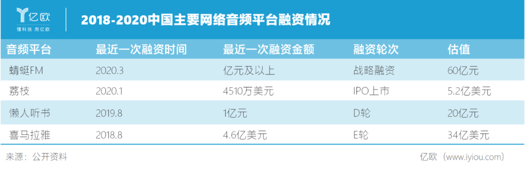 音頻行業(yè)很快受到資本的青睞。從2014開始,喜馬拉雅FM、蜻蜓FM、荔枝FM、多聽FM等音頻公司相繼完成多輪千萬美元量級(jí)的融資,資本的注入讓音頻行業(yè)的發(fā)展進(jìn)入到一個(gè)新的階段。
