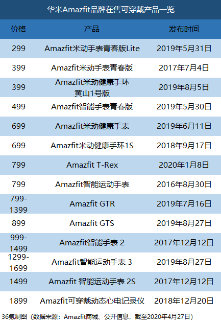 Amazfit 2019年新品發布數量多、頻率高,在保持品牌曝光度、快速覆蓋300元~2000元全部價格區間的同時,也不可避免地存在相近價位產品區分不夠明顯、新老產品內耗的問題。