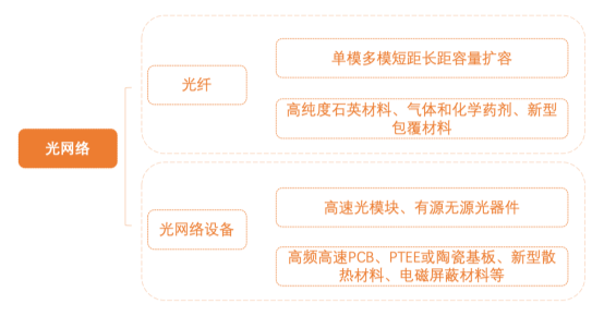 5G新基建的核心是建設(shè)并升級(jí)無線通訊的三大關(guān)鍵要素——通訊基站、光網(wǎng)絡(luò)、核心網(wǎng),那么其對(duì)應(yīng)的上游行業(yè)及產(chǎn)業(yè)賽道可依此進(jìn)行分類: