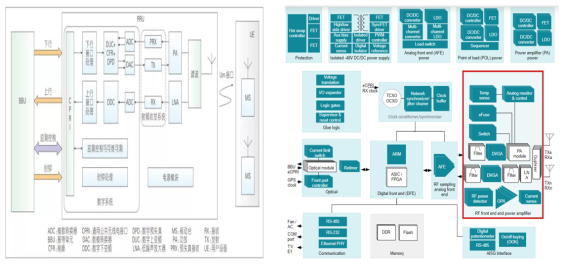 左圖為RRU的原理框圖,右圖為某全球領(lǐng)先的半導(dǎo)體公司的RRU解決方案