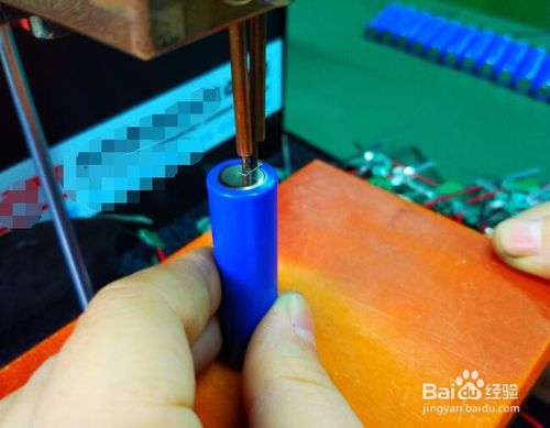 將圓柱型電芯放在點焊機工作臺上,正極朝上并讓焊針居中對準,操作點焊機之前需要設定好電流,時間,兩根焊針之間的間距等細節。